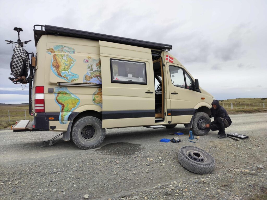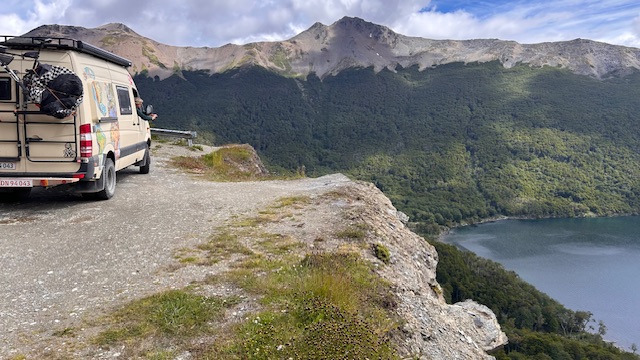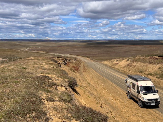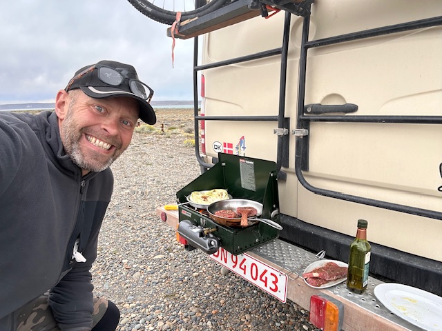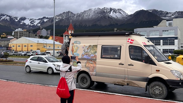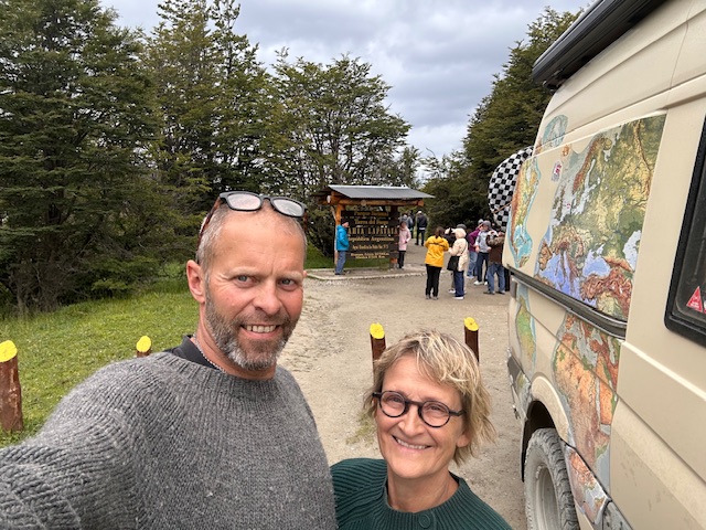 Vi forlader El Chalten, Argentina og sætter kursen mod det sydligste man kan komme på dette kontinent. Vi har efterhånden kørt ca 5-6000 km og store øde strækninger. Holder man ind for at få en mad, tisse, tage et billede, eller andet på disse strækninger, -og en anden vejfarende kommer forbi, holder man ind. Spørger om alt er OK – alle gør det, når det er øde. Det er da lidt fedt, -så det gør vi også.